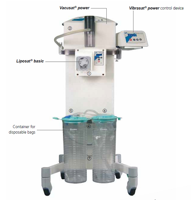 The combination of the suction apparatus Vacusat® power with the infiltration pump Liposat® basic and the vibration drive Vibrasat® power means an competitive